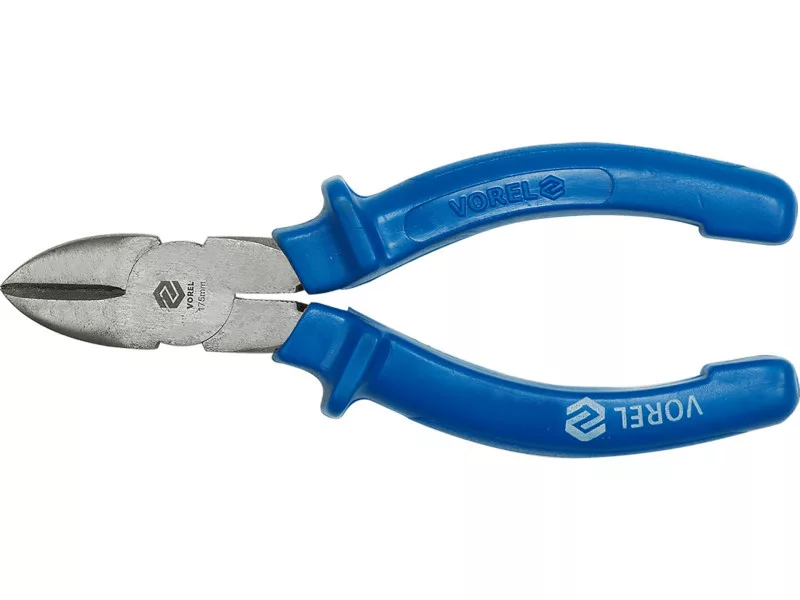 175 mm-es oldalvágó fogó a Vorel 40018-tól. Ásványolt fogófelület. A nyél kényelmes műanyag borítással ellátott.