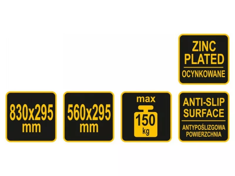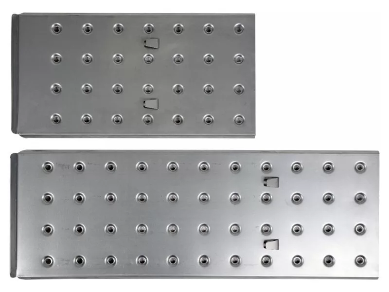 A platformokat masszív horganyzott acéllemezből készítették, amelyek 150 kg -os teherbírást biztosítanak.
