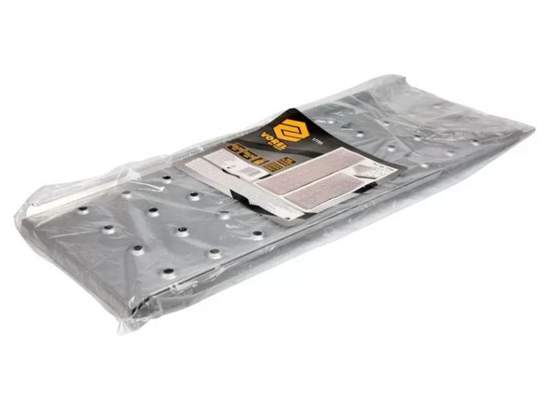 2 darabos platform 4x3 multifunkciós létrához (VOREL 17704). A készlet 2 platformot tartalmaz a következő méretben: 56x29.5 cm 83x29.5 cm A platformokat masszív horganyzott acéllemezből készítették, amelyek 150 kg -os teherbírást biztosítanak. Amikor a platformokat a VOREL 17704 multifunkciós létrán helyezik el, 140x29.5 cm-es platformot kapunk. Ekkora hasznos terület csökkenti a létra gyakori áthelyezésének szükségességét, ami jelentősen felgyorsítja a munkát. Ezen felül a felhasználó lehetőséget kap arra, hogy a szükséges anyagokat és eszközöket egymás mellett helyezze el, ami jelentősen növeli a munka kényelmét és kiküszöböli a munka megszakításának és a létráról való leszállás szükségességét. A platformokon csúszásgátló lapok találhatók a leesés kockázatának csökkentése érdekében. Eközben rögzítőfülek biztosítják a platformok elcsúszása ellen a munka során. A platformokat csúszásgátló eszközzel is felszerelték. Figyelmeztetések a használatra: A 17705 platformok csak a 17704 katalógusszámú létrához használhatók. Ha más létrával vagy más módon használják őket, a gyártó nem garantálja a biztonságos használatukat. A platformok biztonságos alkalmazásának biztosítása érdekében, kérjük, olvassa el a 17704-es létra használati útmutatóját.