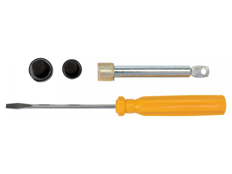 Kézi prés a műanyag patentok hatékony összenyomásához   A szett tartalma: prés cserélhető szerszámfejek tű szerelőcsavarhúzó Használati figyelmeztetések: Figyelem! Mindig használjon személyes védőfelszerelést a munka során.