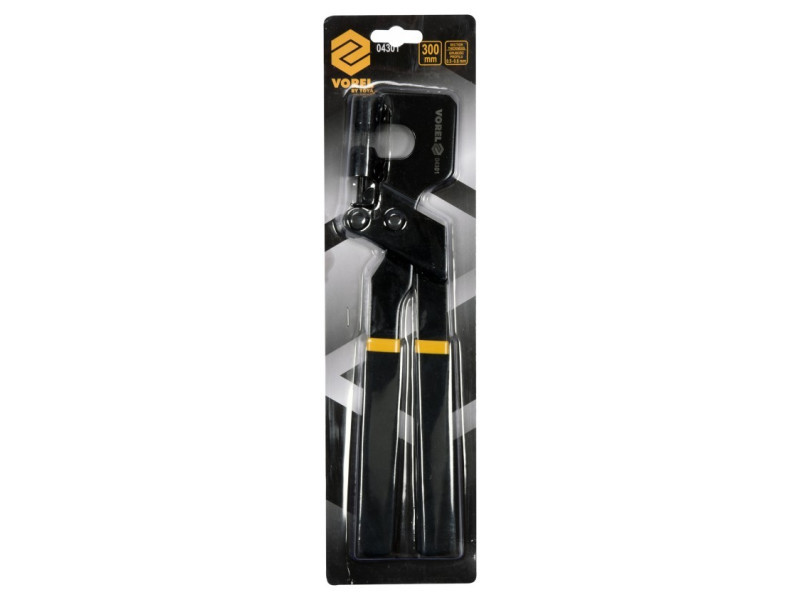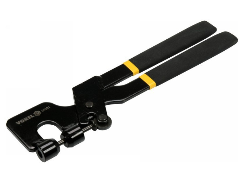 Specializált fogó perforációhoz és lemez összekötéséhez. Tervezésük alapján gyorsan összeköthetőek 0,8 mm vastagságú lapokból készült elemek. Fémprofilok gipszkartonhoz való rögzítésekor, lemezmunkáknál és tetőfedésnél használatosak. A fogó használata kiküszöböli az összekombinált elemek fúrásával járó időigényes munkát. Lehetővé teszi az elektromos áram nélküli munkavégzést. A fogó 5 mm vastag acéllemezből készült. Teljes hossza 300 mm. Gipszkartonhoz való fémprofilozás munkálataihoz. Használati figyelmeztetések: A kéziszerszámok használata veszélyes lehet! Mindig használjon személyes védőfelszerelést munka közben. Csak megfelelő és sérülésmentes szerszámokat használjon. Válassza ki a munka számára megfelelő szerszám típust és méretet. Ne terhelje túl a szerszámokat. Tartsa a szerszámokat távol a gyermekektől. Használja óvatosan a szerszámokat.