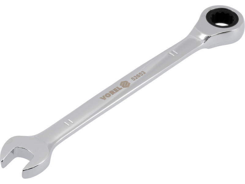 Zseb kulcs Vorel 52653 11 mm-es racsnival. CRV króm-vanádium acélból készült. A racsni 72 fogú. A felület krómmal van bevonva.