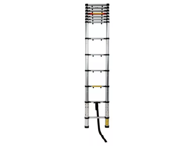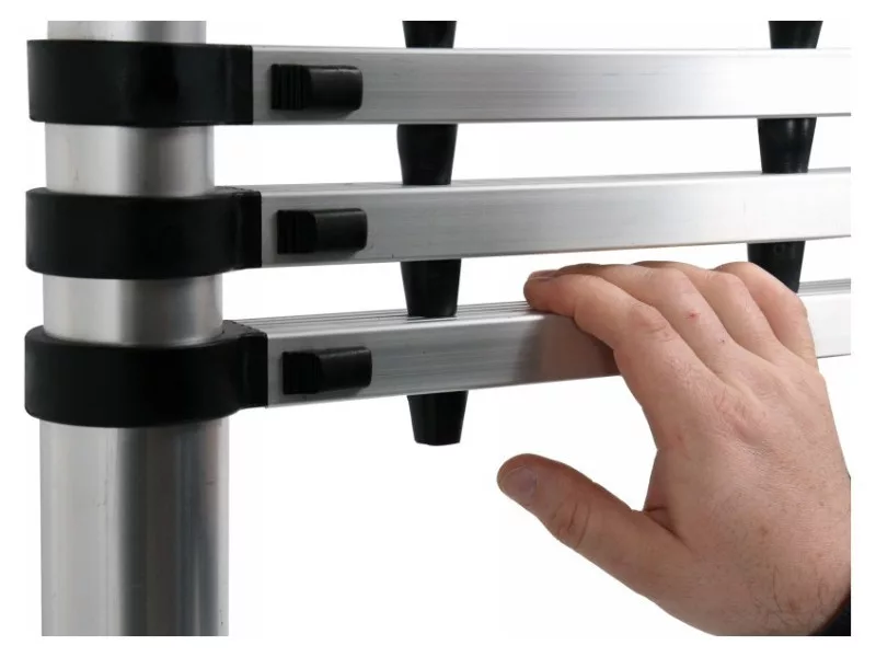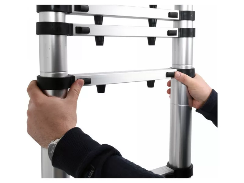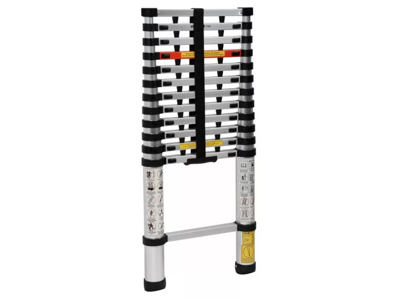 Alumínium sz telescópos létra, amely hasznos a magasságban végzett munkákhoz otthon, kertben, raktárban, műhelyben és építkezésen.