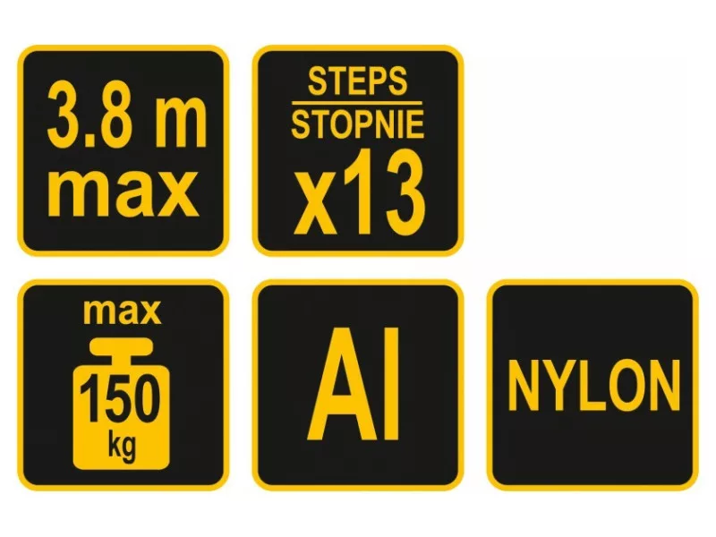 • a nylon létrafokok ellenállnak az időjárási tényezők hatásának