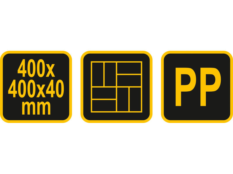 Forma friss, öntött betonburkoló kövek mintázatának elkészítéséhez, amely utánozza a csempéket vagy köveket. A forma kemény polipropilén műanyagból (PP) készül, így többször is használható. Méretek körülbelül 400 x 400 mm. Forma: 40 mm Kr 'Oacute' beszerzése. Négy szegmensből & oacute; w. & nbsp; Kerti ösvények, teraszok, lépcsők, padlók és egyéb beton aljzatok díszítésére, befejezésére. Előzetes vázlatot kapunk a csempékről vagy a kőkövéről. Az elérhető hatást fokozza a minta fugázásával vagy speciális beton eszközökkel történő színezésével. A kész betonöntőbe helyezze / nyomja meg érzékenyen / a kiválasztott formát úgy, hogy azt a beton megkötése után ki lehessen húzni. A forma eltávolítása után a kész aljzaton kapunk egy konkáv mintát, amely megfelel az előre kiválasztott formának. A munka befejezése után mossuk le a formát, eltávolítva az anyagmaradványokat.