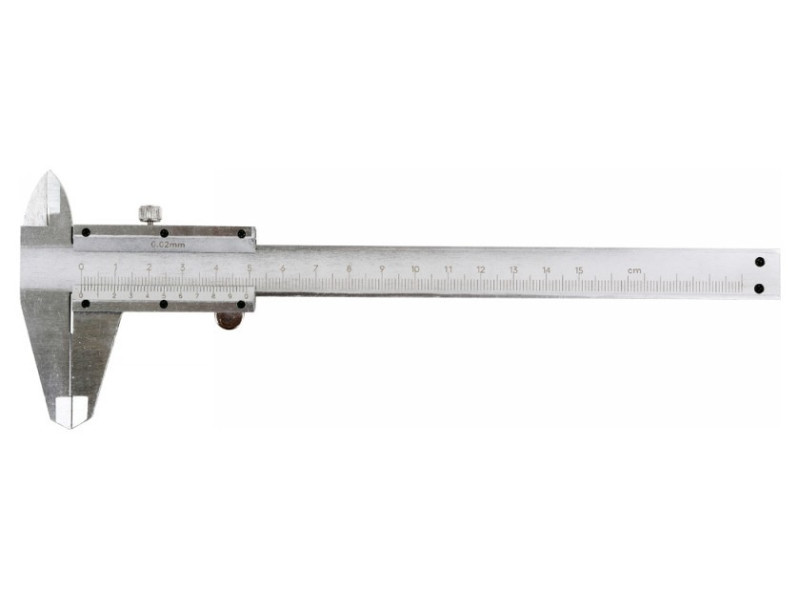 Rozsdamentes acélból készült, a klasszikus csúsztatómérő 0 - 150 mm közötti méréseket tesz lehetővé 0.02 mm-es pontossággal.