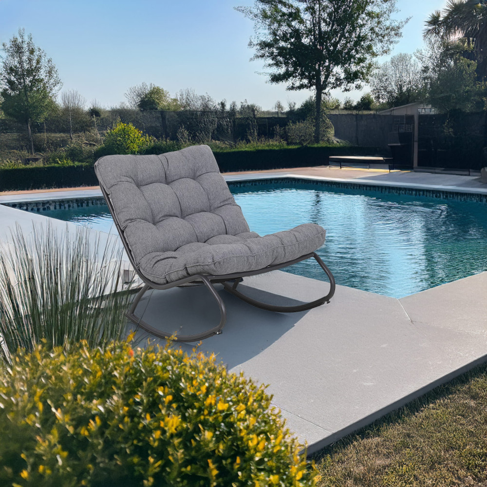 • A kerti szék ülőfelülete optimálisan profilozott, ami a vastag párnával és a ringatási lehetőséggel kombinálva magas szintű pihenést garantál
