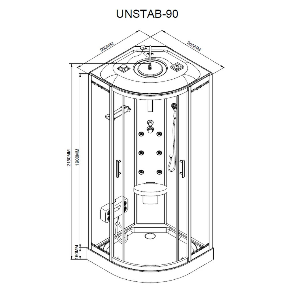 Leziter UNSTAB-90 Vital Black hidromasszázs zuhanykabin telepítés zuhanytálcára