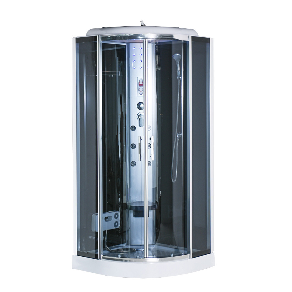 A zuhanykabin 6 hátmasszírozó fúvókával van felszerelve. Az alumínium hátsó panel és a beépített elektronika, kezelőpanel, rádió és hangszórók lehetővé teszik, hogy minden zuhanyzás egy igazi élménnyé váljon. A hátsó és felső hangulatvilágítás, valamint a felső világítás tovább fokozza a relaxációt, miközben a praktikus piperepolc és a lábmasszírozó gondoskodik a maximális kényelemről.