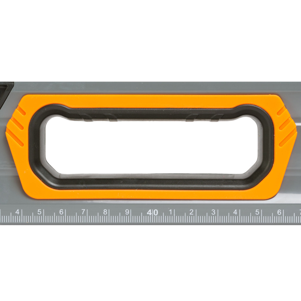 Professzionális vízmérték 3 db elektronikusan kalibrált libellával. Minőségi, nagy szilárdságú festett alumínium boxból készült, amelynek a végén stabil gumi végütköző található. Az eszköz teljes hosszában skálázott vonalzó, mérések során lehet hasznos. 2 db belső, gumírozott fogantyú segíti a stabil tartást bármilyen helyzetben. Az oldalélen található tükörrel ellátott betekintőablaknak köszönhetően szűk helyeken is leolvasható a függőleges libella. Ideális felhasználási terület lehet építkezéseken, felújításokon, segítségével biztosan nem lesznek többé ferde síkok, felületek.