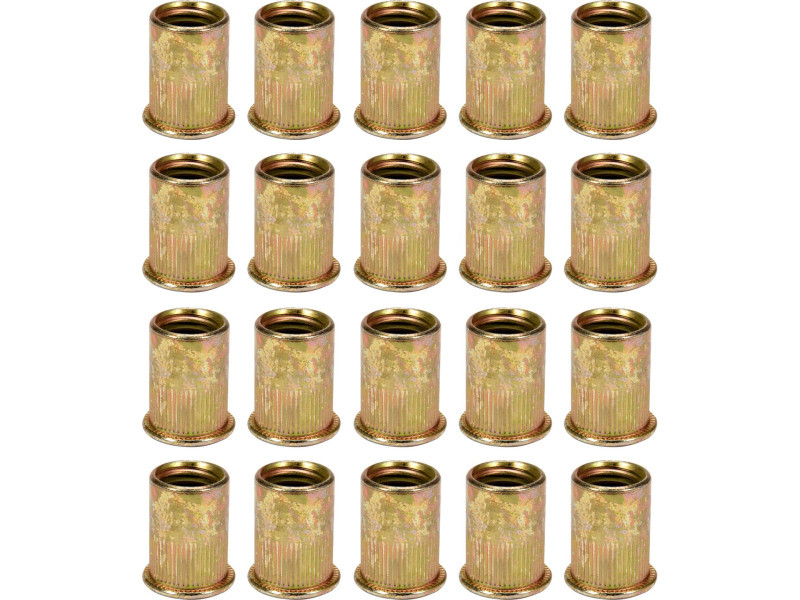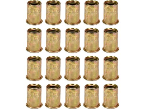 YATO márka M6 acél szegecsanyák  Anyag: szénacél Méret: M6 Hossz: 15 mm Darabszám készletenként: 20 Hengeres, bordázott perem, ami szorosabban tapad a rögzített alkatrészhez. A szegecsanyák lehetővé teszik, hogy csavart vagy metrikus menettel rendelkező csavar kerüljön bele lemezbe vagy más anyagba, ahol menet kialakítása nem lehetséges.