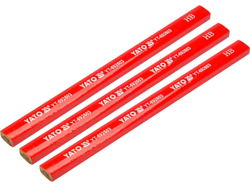 Asztalos ceruzák 175 mm. 3 darabos készlet, fa, ovális, lakkozott. Lapos betét. Szélesség kb. 2 x 5mm, keménység HB. Ceruzák műszaki munkához, egyértelmű kiválasztás és rajzolás fa és fa alapú anyagokon. Rajzolásra vagy kiválasztásra a munkadarabon, főként fa és fa alapú termékeken