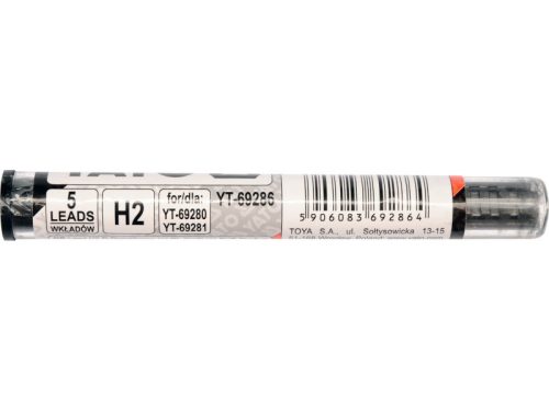 H2 keménységű grafit stílusok fa és építőanyagokra íráshoz. A Yato YT-69280 ceruzához tervezve. A tartály 5 stílust tartalmaz. Kiegészítésként YATO vagy más automatikus ceruzákhoz hasonló kialakítású.