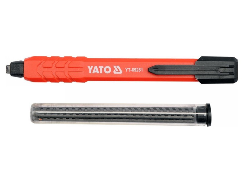 Műszaki alkalmazásokhoz szánt ceruza, széles automatikusan kinyúló grafit betéttel. Könnyű műanyag test rugalmas csipesszel a rögzítéshez. A használt grafit betét függvényében különböző anyagokhoz ajánlott. A készlet tartalmaz egy tartályt hat darab HB keménységű grafit patronnal. Fa alapú anyagok, például táblák, rétegelt lemez, forgácslap és különböző építőanyagok jelölésére és vonalazására használható.