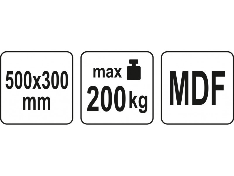 Szállítókocsi - szállító platform, tartós MDF-ből készült, négy forgatható, monolitikus fekete polipropilén kerékkel szerelve. 75 mm kerékátmérő. Platform méretek: hossza 500 mm, szélessége 300 mm, vastagsága 18 mm, keréken való magassága 113 mm. A platformon van egy kivágott nyílás a könnyebb szállítás érdekében. Négy csúszásgátló matrica van elhelyezve a lapon. A platform teherbírása 200 kg, kisebb terhek, pl. bútorok, dobozok, háztartási gépek szállítására alkalmas, legfeljebb 200 kg-ig