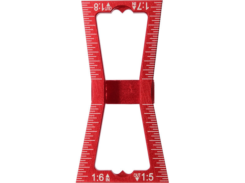 Asztalos sablon a fecskefark csatlakozások készítéséhez 1:5 és 1:8 méretekben. Fém készítésű, világosan felvitt jelölésekkel. Lehetővé teszi a pontos karakterek könnyű elkészítését kemény vagy lágy faanyagokon. A szablya méretei 64 x 23 x 18 mm. Fecskefarkú elemek csatlakoztatására szolgál.