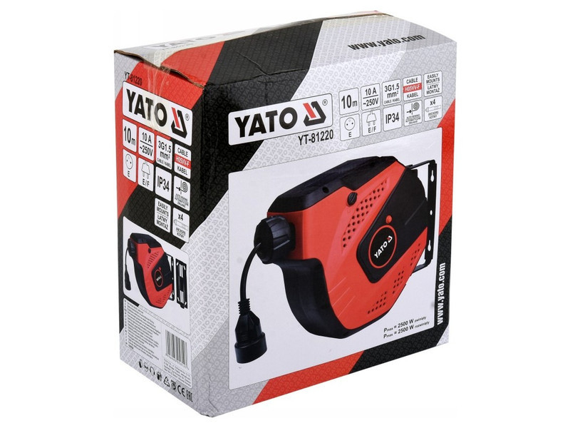 YATO Automata kábeldob falra szerelhető 10 m 3 x 1,5 mm2