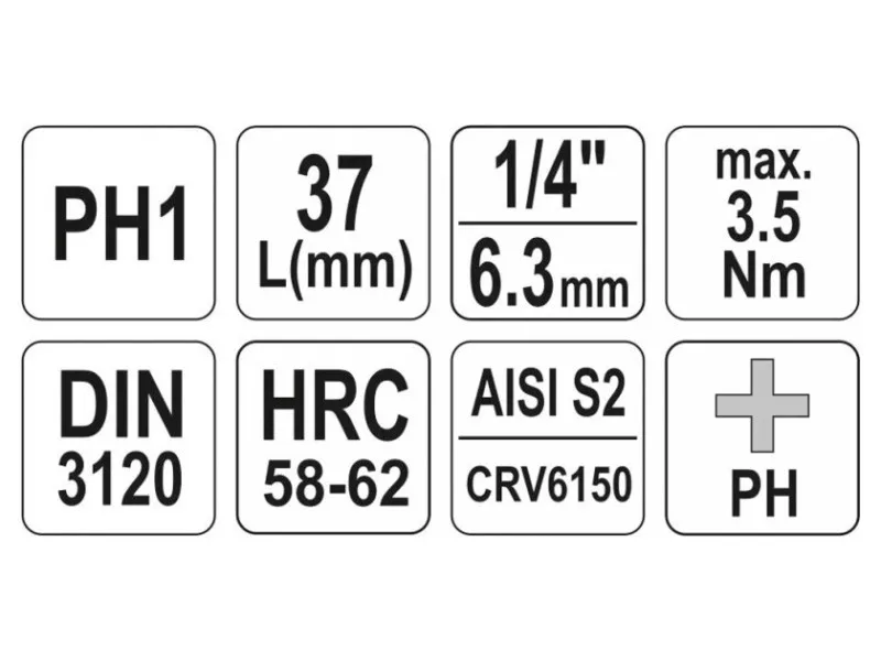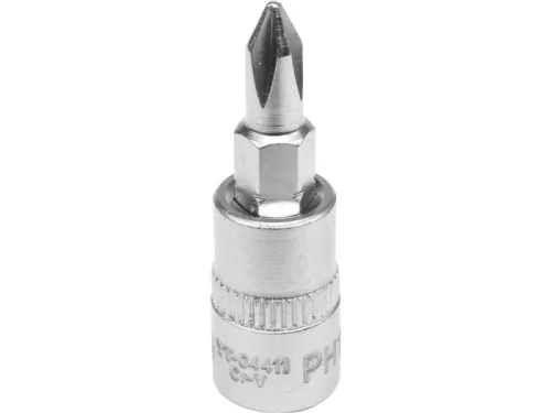 Professzionális befogófej, 1/4" sapkaméret, pH1 befogófej. Krómozott sapka, amelyet CRV6150 acélból, a befogófej AISI S2 acélból készült, és nikkel bevonattal van ellátva. Nélkülözhetetlen eszköz minden autószerelő vagy gépészeti műhelyben.