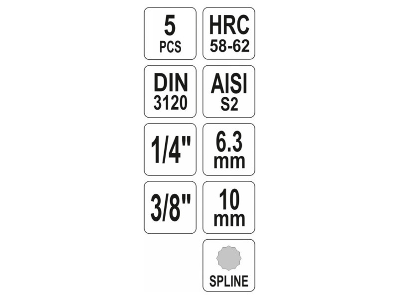 YATO Bit dugókulcs készlet 5 részes Spline 1/4", 3/8" CrV