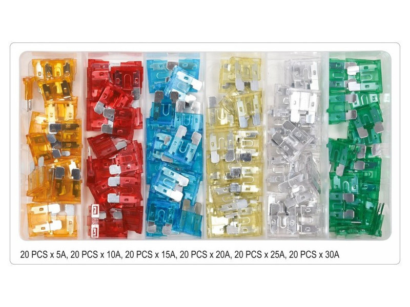 Biztosíték készletek, melyek megvédik az autók elektromos rendszereit a túlzott áram okozta károsodástól. Széles körben használatosak az autóiparban. Kényelmes dobozokban csomagolva.standardmindenből 20: 5 A, 10 A, 15 A, 20 A, 25 A, 30 A