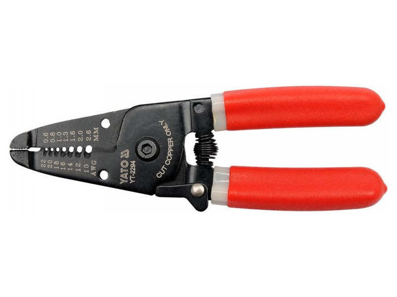 A YT-2294 fogó vastag edzett acélból készült, fekete felülettel, ami védelmet nyújt a korrózió ellen. A fogantyúkat víz alatti műanyag kupakok védik.Edzett munkadarab 50-53 HRC-igSegéd rugóLehetőség kör alakú drótok szigetelésének lehúzására 0,64 mm2 és 2,6 mm2 közöttképesség drótok vágásáraYT-2294 fogó alkalmazási diagram: Használati figyelmeztetések: Figyelem! Mindig használjon személyi védőfelszerelést munka közben.