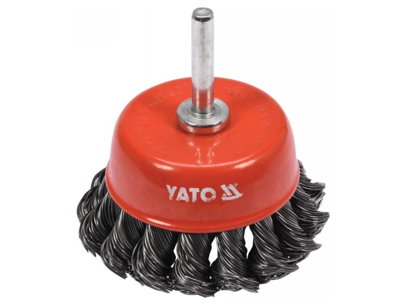 Forgácsolókefe, melyet fémfelületek tisztítására és polírozására, festékbevonatok, valamint rozsda eltávolítására és szerszámtisztításra terveztek, csiszológép használatával.magas minőségű anyagokból készülthatékony és tartósacélgyűrűvel erősített drótrögzítés./ul>nagy darabok rozsda, szennyeződés és hegesztési varrat eltávolítására tervezettINOX acélból készült tekercselt drótkefe átmérője: 65 mmtengely átmérője: 6 mmmax. sebesség: 12500 ford/perc Használati figyelmeztetések: Figyelem! Mindig használjon személyes védőfelszerelést munka közben.