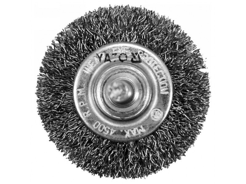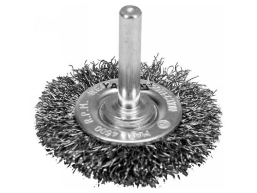Rotációs kefe, melyet fémfelületek tisztítására és polírozására, festékrétegek eltávolítására, valamint rozsda és szerszámok tisztítására terveztek, csiszológép használatával. magas minőségű anyagokból készült hatékony és tartós a drótrögzítés acélgyűrűkkel erősített fémek és rozsdamentes acél feldolgozására, festékrétegek és rozsdabetétek eltávolítására tervezett a hajlított drót INOX acélból készült kefe átmérő: 50 mm tengely átmérő: 6 mm max. sebesség: 4500 ford/perc Használati figyelmeztetések: Figyelem! Mindig használjon személyi védőfelszerelést a munka során.