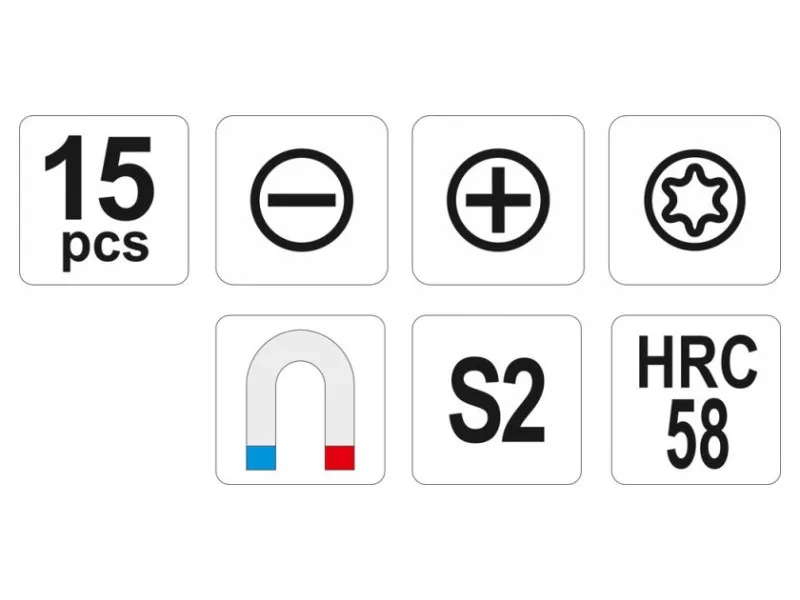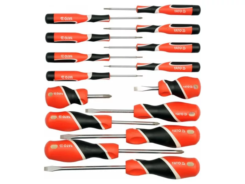 Professzionális összeszerelési munkákhoz különböző iparágakban. Kerület készült acélból az S2 jelzéssel, edzett kb. 58 HRC-ig. A szatén felület, a munkahegy edzett és homokfúvott / megerősíti a barlang stabilitását /. A nyél megfelelően kiválasztott anyagokból készült, különböző keménységgel professzionális összeszerelési munkákhoz különböző iparágakban. Csavarhúzók: lapos: 6x125mm, 6x100mm, 6x38mm, 5x75mm, kereszt: PH2x100mm, pH2x38mm, pH1x75mm; Precíz csavarhúzók: lapos: 1.5x50mm, 2x50mm, kereszt: PH00x50mm, PH0x50mm; Torx T5x50mm, T6x50mm, T7x50mm, T8x50mm;