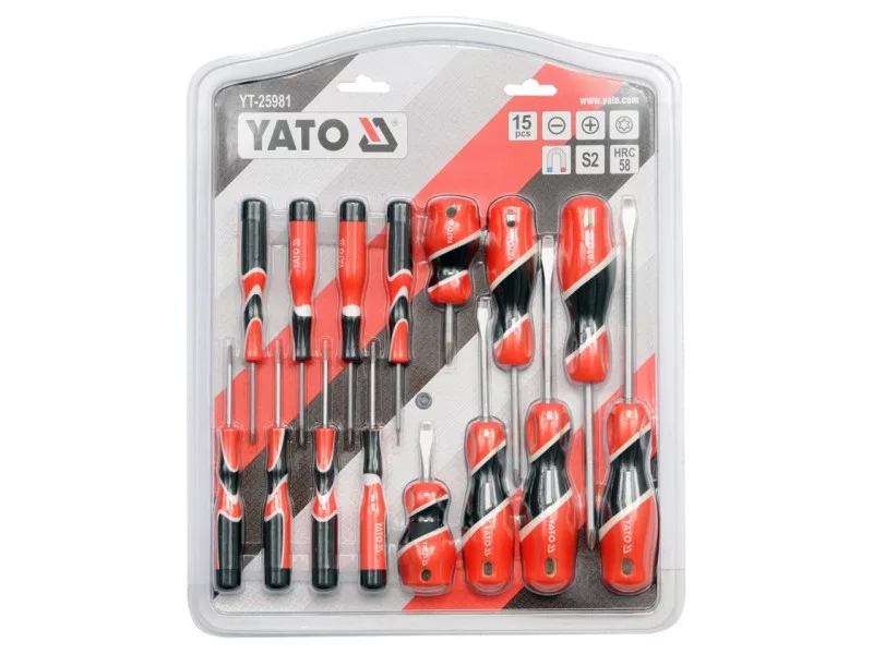 Professzionális összeszerelési munkákhoz különböző iparágakban. Kerület készült acélból az S2 jelzéssel, edzett kb. 58 HRC-ig. A szatén felület, a munkahegy edzett és homokfúvott / megerősíti a barlang stabilitását /. A nyél megfelelően kiválasztott anyagokból készült, különböző keménységgel professzionális összeszerelési munkákhoz különböző iparágakban. Csavarhúzók: lapos: 6x125mm, 6x100mm, 6x38mm, 5x75mm, kereszt: PH2x100mm, pH2x38mm, pH1x75mm; Precíz csavarhúzók: lapos: 1.5x50mm, 2x50mm, kereszt: PH00x50mm, PH0x50mm; Torx T5x50mm, T6x50mm, T7x50mm, T8x50mm; Használati figyelmeztetések: Figyelem! Mindig használjon személyes védőfelszerelést munka közben.