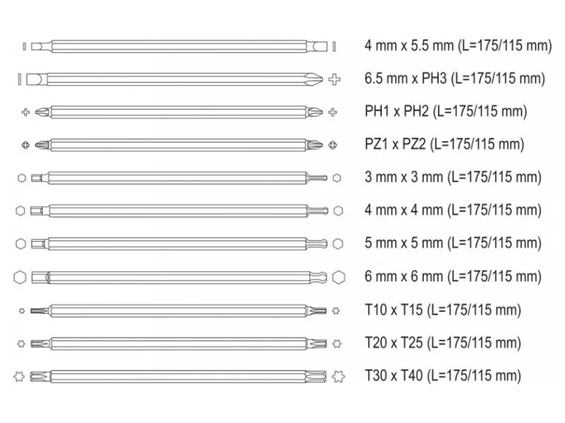 YATO Csavarhúzó készlet kétvégű szárral 12 részes