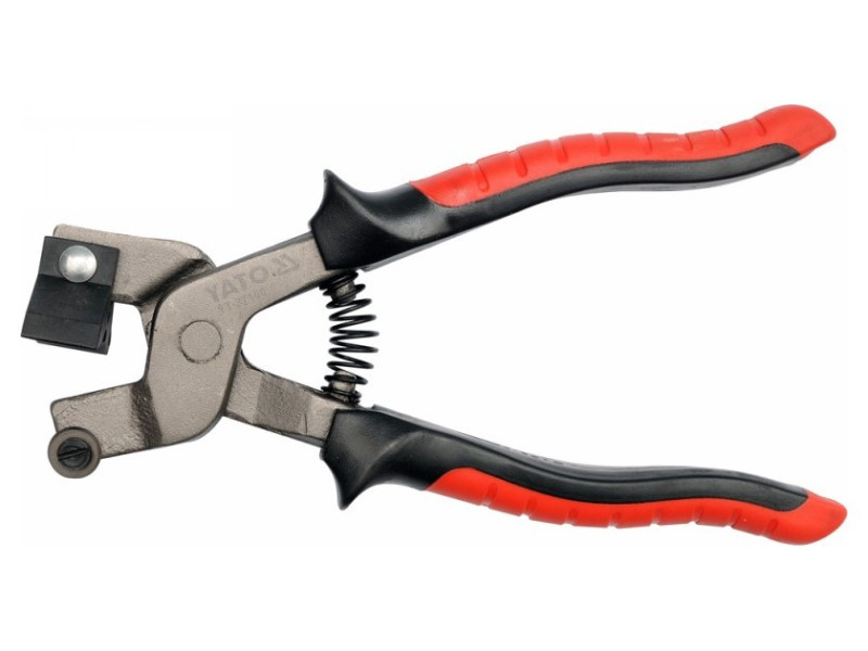 Csempevágó és -törő csipesz. A törő lába speciális műanyagból készült - így nem károsítja a mázat a lágy csempék törésekor. A fogó hidegalakított. Vágóelem - tárcsakés készült YG-6X karbidból. Kényelmes, ergonomikus formájú hüvelyekkel ellátva, amelyek nagy nyomást és nyitórugót tesznek lehetővé.