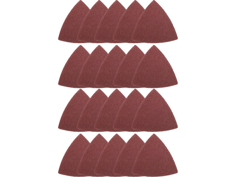 20 darabos háromszög alakú csiszolópapír készlet fa, fém és gipsz csiszolásához. Szélesség oldal 80 mm.