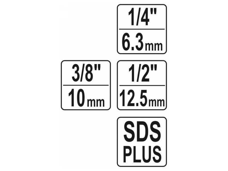 Yato YT-04685 SDS-plus adapterkészlet 1/4, 3/8, 1/2 dugókulcsokhoz.