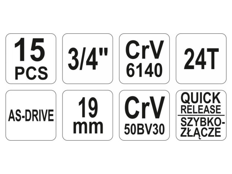 YATO Dugókulcs készlet 15 részes 3/4" 30-60 mm CrV