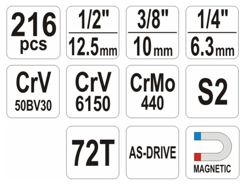 YATO Dugókulcs készlet 216 részes 1/4", 3/8", 1/2" CrV