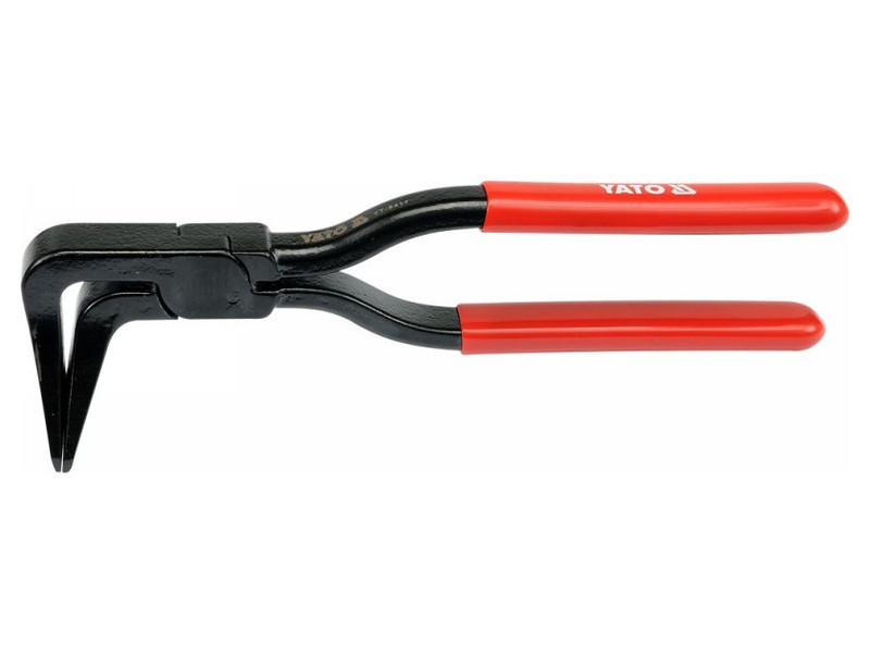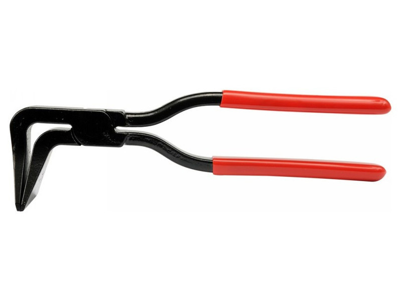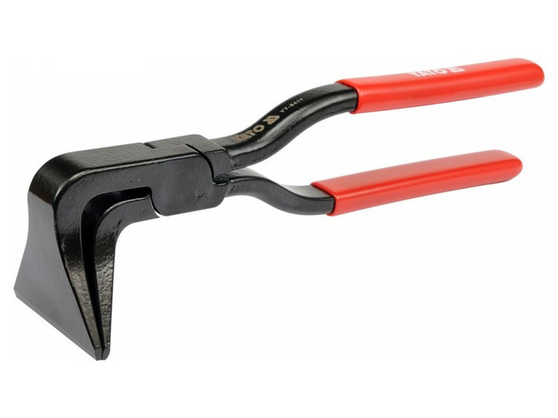 Tetőfedő fogó, acélból kovácsolt, kézzel alakítható fémlemezekhez. Ennek a fogónak a különlegessége a fej és az állkapcsok különleges formája, szélességük 60 mm, az eszköz teljes hossza 280 mm. A fogantyúk kemény, csúszásmentes műanyaggal borított borításokkal vannak ellátva, az állkapcsok 90°-kal eltérnek a fogó tengelyétől. Használati figyelmeztetések: Figyelem! Mindig használjon személyi védőfelszerelést munka közben.