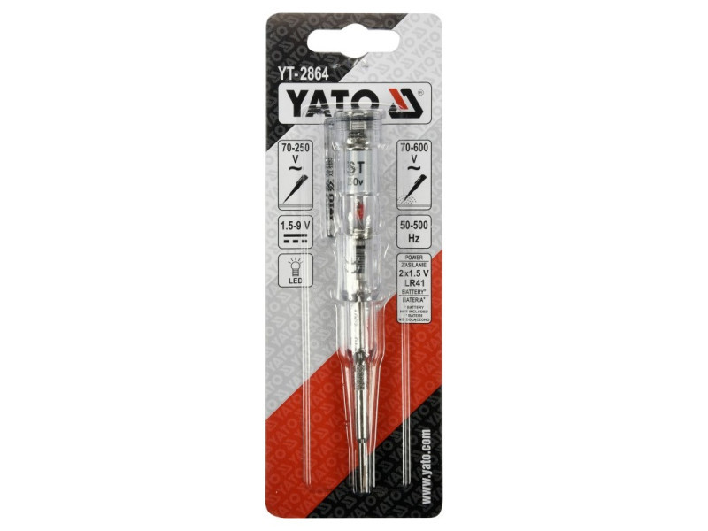 A YT-2864 feszültségmonitor lehetővé teszi az AC feszültség érzékelését, például egy háztartási aljzatban vagy a drótok végén, két módszerrel: érintkezési és indukciós. A készülék lehetővé teszi a felhasználó számára a kábel folytonossági tesztjét és az akkumulátorok vagy újratölthető akkumulátorok állapotának ellenőrzését. A feszültség jelenlétét az a LED jelzi, amely a fogantyú belsejében található.