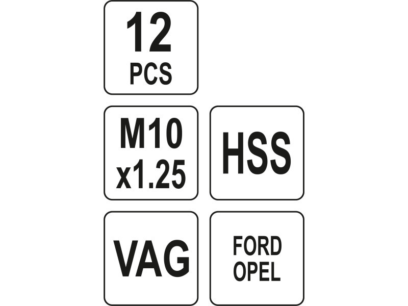 • csomag tartalma: fúrószár (Ø8.8 mm), M10x1.25 mm menetfúró, 10x nagyobb méretű vezető (M10x1.25 mm menet, Ø12 mm, L=42 mm)