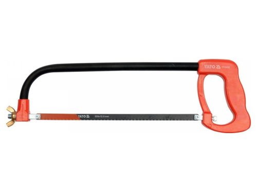 Fémfűrész L 300 mm, acélcsőből készült biztonságos, zárt, alumínium fogantyúval. A pengét pillangó anyával ellátott csavarral rögzítjük. A csomagban egyoldalas 300 x 12 mm-es bimetál penge, 24 TPI skálával.