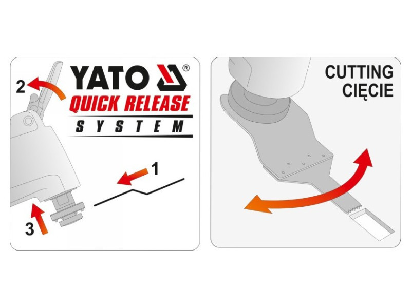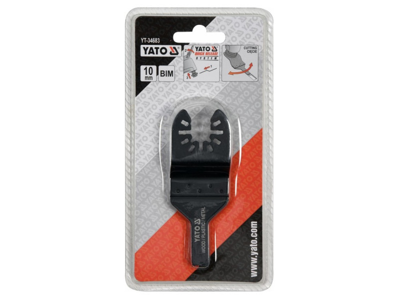 Ez a kiegészítő az oszcilláló multifunkciós szerszámhoz kemény anyagok, mint a fém vagy a kemény fa mély vágására szolgál. A YATO QUICK RELEASE SYSTEM sorozatú oszcilláló multifunkciós szerszámok és kiegészítők lehetővé teszik a kiegészítők gyors, ugrásmentes cseréjét, ami jelentősen megkönnyíti és felgyorsítja a munkát. A YATO QUICK RELEASE SYSTEM kiegészítők a legjobban a kompatibilis YATO eszközökkel működnek, különösen az YT-82220-as modellel. Ezenkívül a YATO QUICK RESLASE SYSTEM kiegészítők kompatibilisek a piacon elérhető legtöbb eszközzel, különösen a Bosch OIS rendszerrel kompatibilis eszközökkel. A YATO QUICK RELEASE System kiegészítők még a hagyományos rögzítési módszerrel, az Allen csavar meglazítása után is megkönnyítik a munkát, mert nem a teljes kicsavarása után, hanem már a csavar meglazítása után is rögzíthetők, ellentétben a versenytársak kiegészítőivel. Az oszcilláló multifunkciós szerszámok a leguniverzálisabb eszközök a piacon. A széles körű YATO kiegészítők használatával vághatók, mélyen vághatók, csiszolhatók, eltávolíthatók a habarcsok és ragasztók, lekaparhatók a festékbevonatok és olyan helyeken is dolgozhatnak, ahova más eszközökkel nem lehet elérni. Mindezt a nagyfrekvenciás kiegészítők oszcillációinak köszönhetően érjük el, aminek köszönhetően teljes kontrollt tartunk a szerszám felett (nincs "visszarúgás" hatás, ami a forgóvágásra jellemző) és minimális rezgéssel. Az multifunkciós szerszámok esetében a felszerelés határozza meg az eszköz hasznosságát. Kibővíti annak képességeit, de a kiegészítők minősége is a legnagyobb hatással van az eszközök munkahatékonyságára. A kényelem is nagyon fontos, minden eszközhasználó értékelni fogja ezt a funkciót, amely lehetővé teszi a kiegészítők hirtelen cseréjét. Használati figyelmeztetések: Figyelem! Mindig használjon személyes védőfelszerelést a munka során.