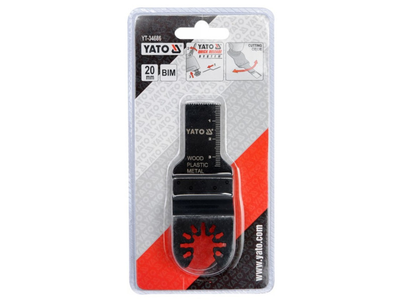 Ez az oszcilláló multifunkciós eszközhöz tartozó kiegészítő kemény anyagok, mint a fém vagy a kemény fa mély vágására szolgál. Az YATO QUICK RELEASE SYSTEM sorozatból származó multifunkciós oszcilláló eszközök és kiegészítők lehetővé teszik a kiegészítők gyors, ugrásmentes cseréjét, ami jelentősen megkönnyíti és felgyorsítja a munkát. Az YATO QUICK RELEASE SYSTEM kiegészítők a legjobban az összeférhető YATO eszközökkel működnek, különösen az YT-82220-as modellel. Ezenkívül az YATO QUICK RESLASE SYSTEM kiegészítők a piacon elérhető legtöbb eszközzel kompatibilisek, különösen a Bosch OIS rendszerrel kompatibilis eszközökkel. Az YATO QUICK RELEASE System kiegészítők még a hagyományos rögzítéssel is megkönnyítik a munkát az Allen csavaron, mert a csavar lazítása után rögzíthetők, és nem a teljes kicsavarás után, mint a versenytársak kiegészítőinél. A multifunkciós oszcilláló eszközök a piac leguniverzálisabb eszközei. Az YATO kiegészítők széles választékát használva mélyen vághat, csiszolhat, eltávolíthatja a habarcsot és ragasztókat, megkarcolhatja a festékrétegeket és olyan helyeken dolgozhat, ahová más eszközökkel nem fér hozzá. Mindezt a magas frekvenciájú kiegészítők oszcillációinak köszönhetően érheti el, amelyekkel teljes ellenőrzést tartunk az eszköz felett (nincs "visszarúgás" hatása, ami a forgóvágásra jellemző) és minimális rezgéssel. A multifunkciós eszközöknél a felszerelés határozza meg az eszköz hasznosságát. Kibővíti a képességeit, de a kiegészítők minőségének is a legnagyobb hatása van az eszközök munkahatékonyságára. A kényelem is nagyon fontos, minden eszközhasználó értékelni fogja ezt a funkciót, amely lehetővé teszi a kiegészítők durván cseréjét.