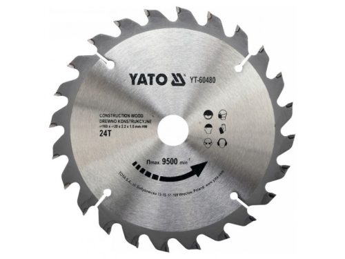 YATO Fűrésztárcsa fához 160 x 20 x 1,5 mm / 24T