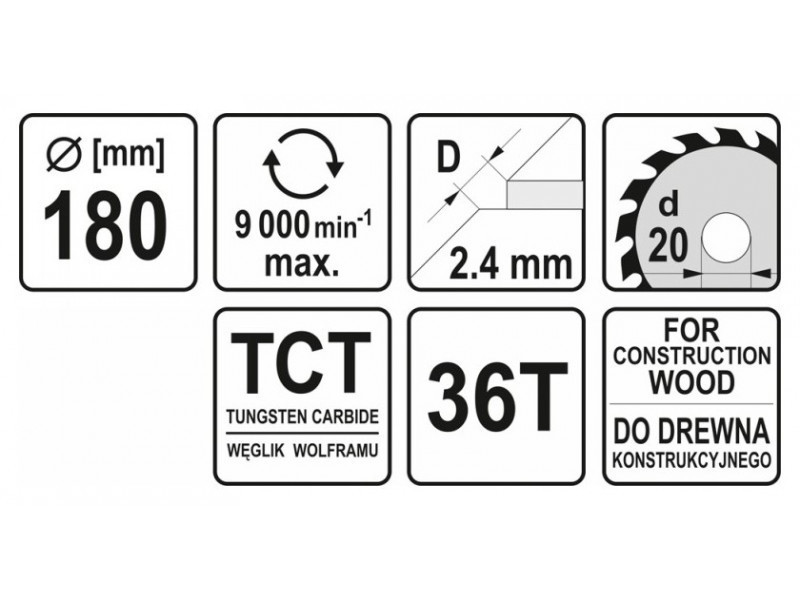YATO Fűrésztárcsa fához 180 x 20 x 1,8 mm / 36T