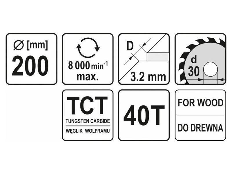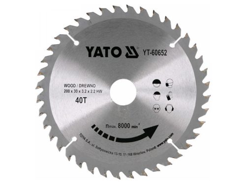 YATO Fűrésztárcsa fához 200 x 30 x 2,2 mm / 40T