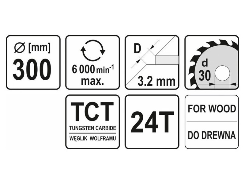 Widia pengék kialakítva kereszt, hosszirányú és szögletes vágásokhoz, fa, fa alapú panelek, műanyagok vágásához. biztosítja a gyors és precíz vágást volfrámkarbid bevonattal ellátott fogak Használati figyelmeztetések: Figyelem! Mindig használjon személyes védőfelszerelést munka közben.