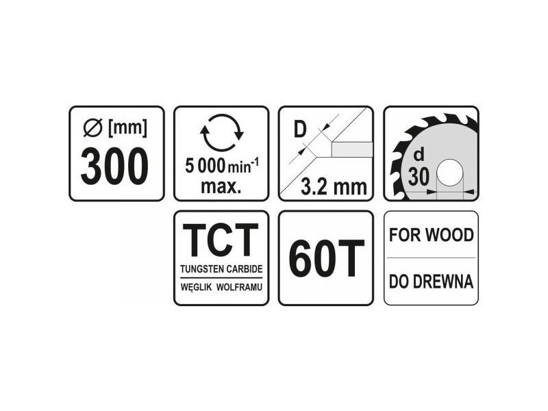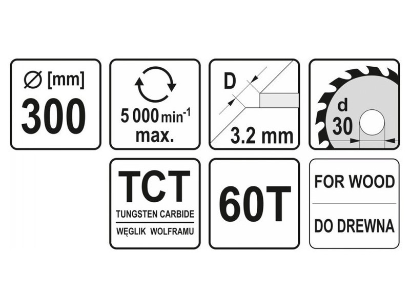 Widia pengés kialakítás keresztirányú, hosszanti és szögbeni vágásokhoz, fa, favégből készült panelek, műanyagok vágásához. biztosítja a gyors és pontos vágást tungszten-karbid borítású fogakkal Felhasználási figyelmeztetések: Figyelem! Mindig használjon személyes védőfelszerelést munka közben.