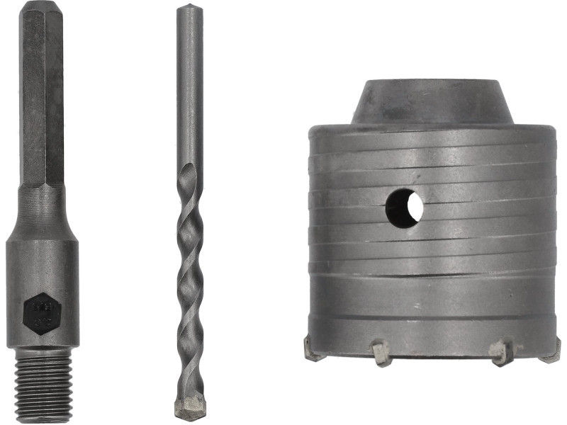 Koronafúró a falba 65 mm - Acélhenger - TCT YG -11C keményfém fogak - Központozó fúró: 6 mm Használati figyelmeztetések: A kéziszerszámok használata veszélyes lehet! Mindig használjon személyes védőfelszerelést munka közben. Csak megfelelő és sérülésmentes szerszámokat használjon. Válassza ki a szerszám típusát és méretét a tervezett felhasználásnak megfelelően. Ne terhelje túl a szerszámokat. Tartsa a szerszámokat a gyermekektől távol. Használja óvatosan a szerszámokat.