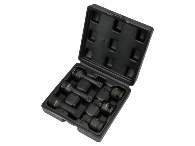 6 darabos Spline ütvefogó szett, amit javasolt autóipari és mechanikai szolgáltatásokhoz. Kifejezetten VW LT, Transporter, Sharan, Golf járművekhez tervezték.