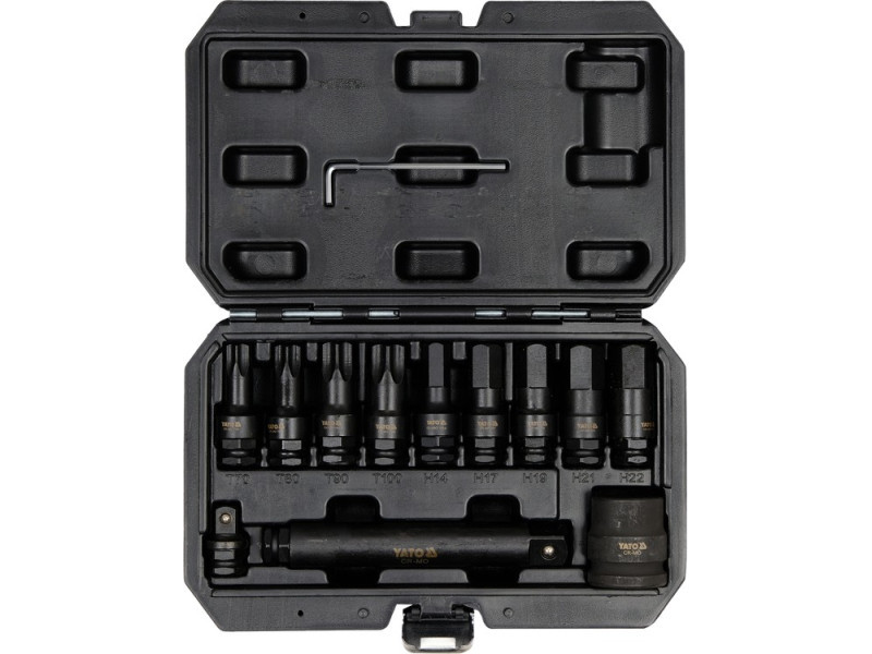 YATO Gépi hosszú bit dugókulcs készlet 12 részes Torx és Imbusz 1/2", 3/4" kamionos CrMo