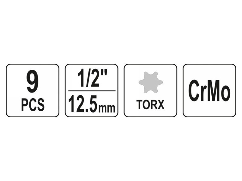 YATO Gépi hosszú bit dugókulcs készlet 9 részes Torx 1/2" T20-T70 CrMo